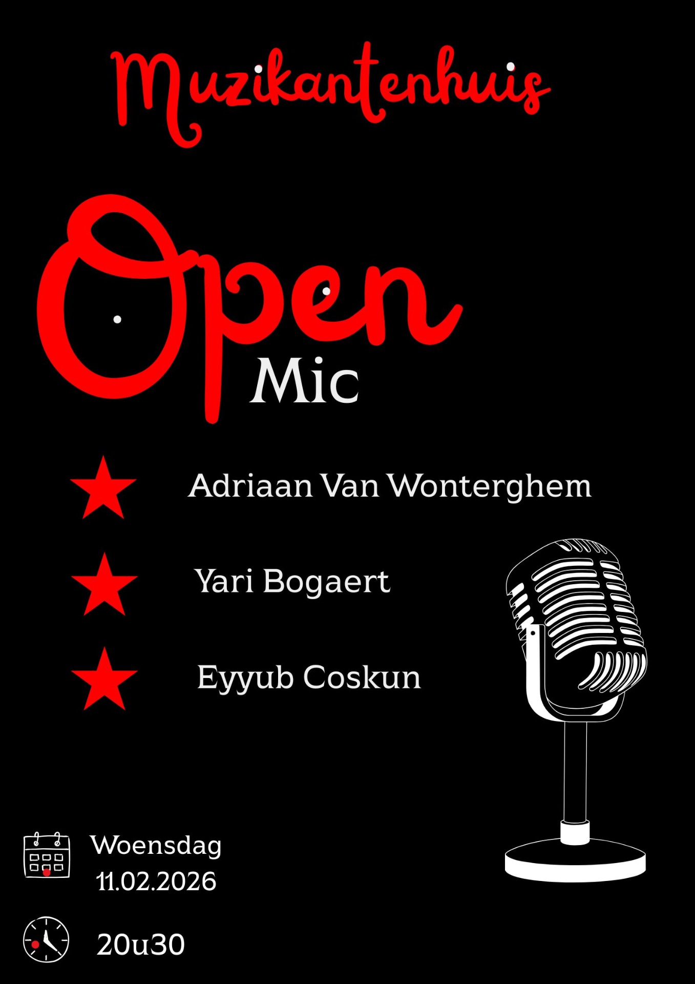 Tussen/na de geboekte acts, is het podium open voor iedereen!